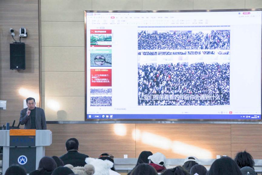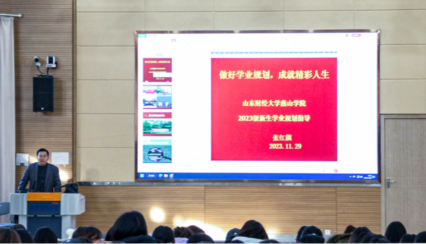 为帮助新生确立正确的学业规划,11月29日下午,山东财经大学燕山学院2023级新生入学学业规划指导讲座在8106教室举行。山东财经大学公共管理学院党委书记张红旗担任主讲人,党委组织员何欢主持讲座。部分2023级新生到场聆听。