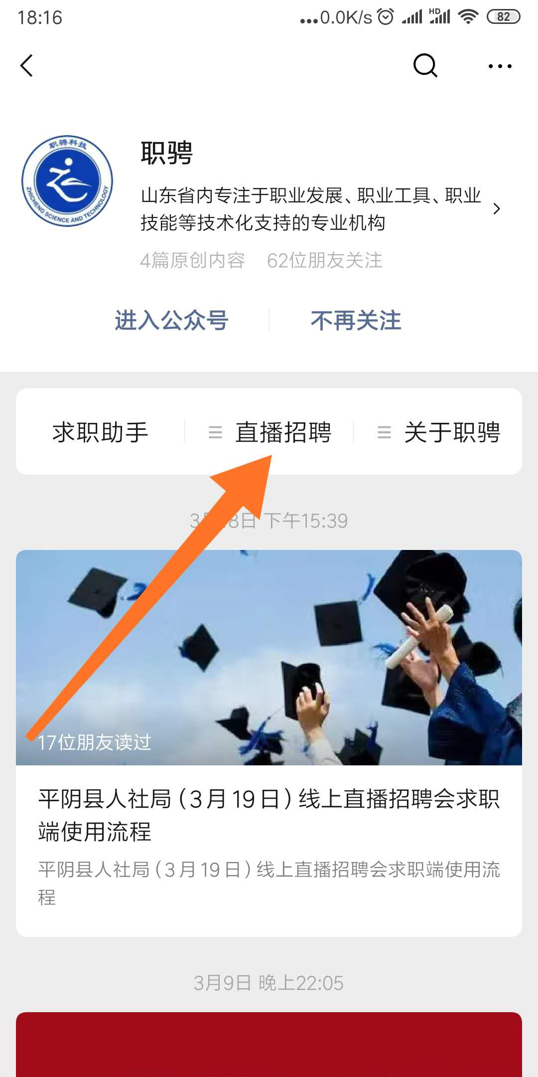 2、进入线上招聘会:进入公众号后点击中间菜单-线上招聘即可进入会场