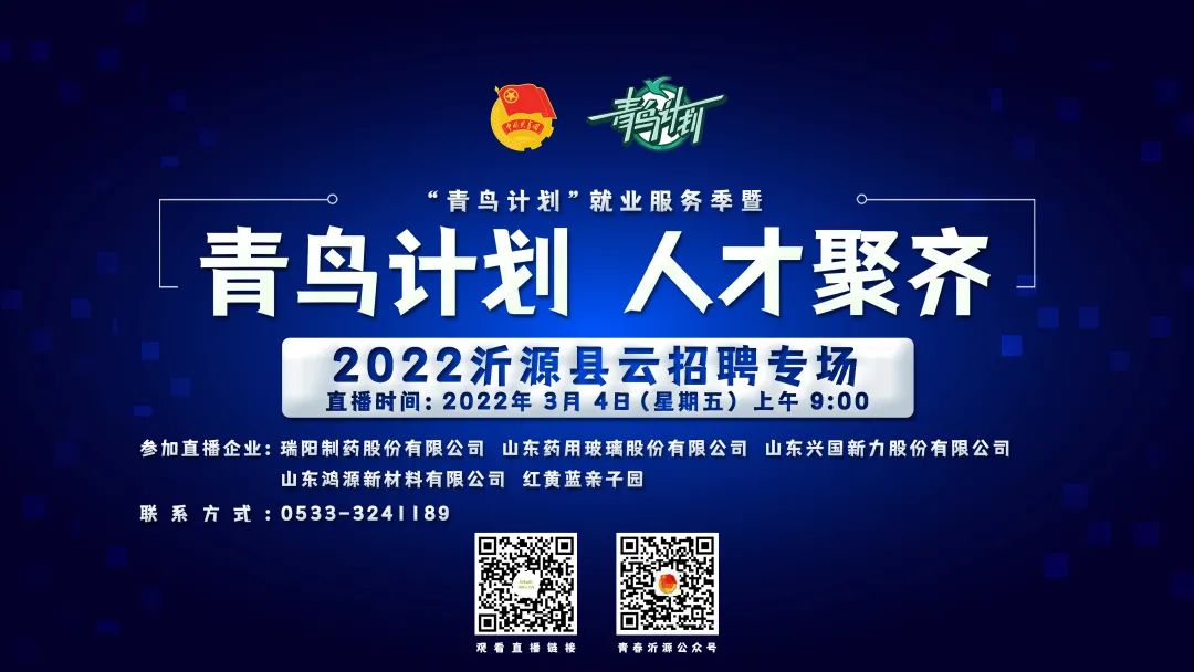 为进一步助力全市招才引智大局,服务大学生就业,助力多彩活力青年创业友好型城市建设,在寒假大学生就业的关键节点,团市委联合市委组织部、市人社局、山东理工大学团委以及区县团组织共同“青鸟计划”就业服务季暨“青鸟计划 人才聚齐”2022云招聘活动。共有1100多家知名单位参加活动,2.6万多个优质职位“职”为遇见发光的你!