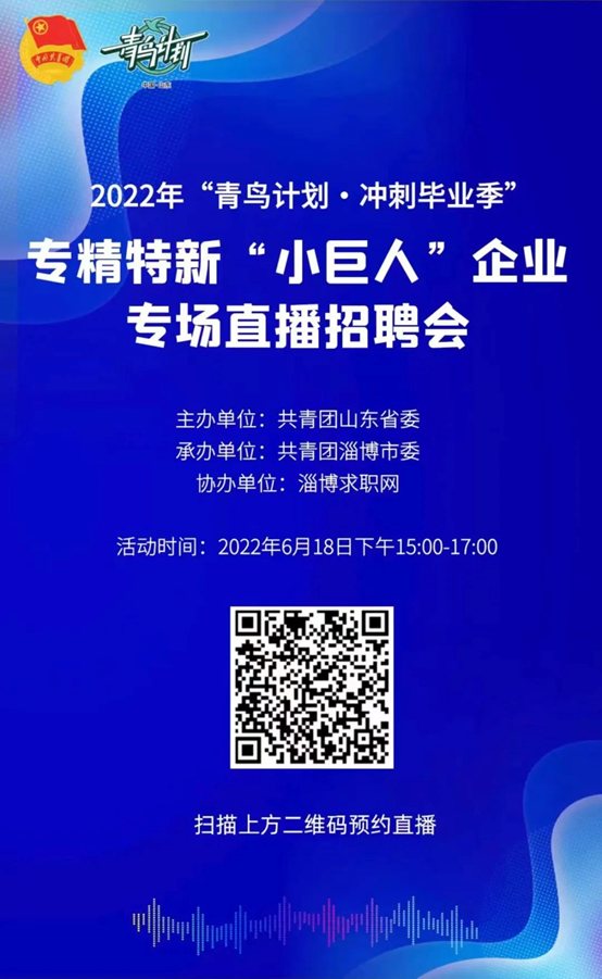 第五场专精特新“小巨人”专场招聘由共青团淄博市委承办,将于20226181500启动。